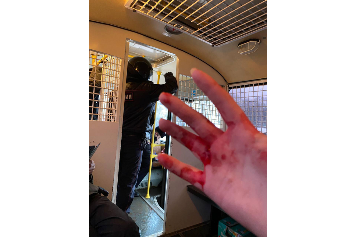 — Сообщалось о Сергее Гурьеве, который лежал в автозаке и с трудом находился в сознании. Сотрудники ОМОНа отказывались вызвать ему скорую помощь. Автозак ехал в отдел полиции в московском районе Марьино;