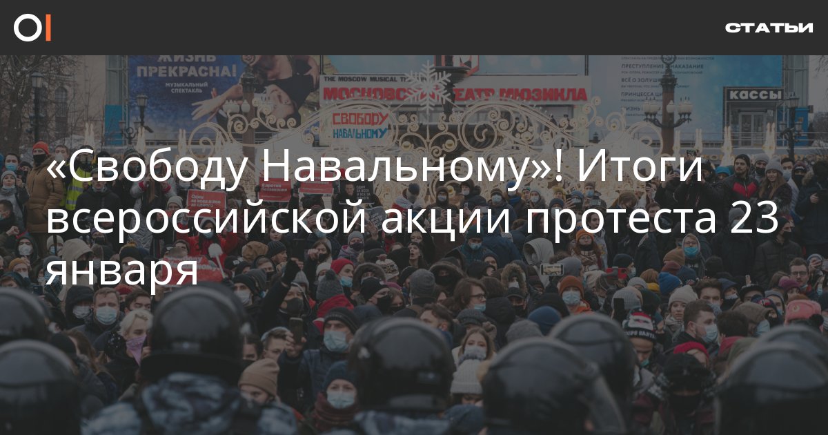 23 января не менее чем в 125 городах России прошли акции протеста в поддержку арестованного политика Алексея Навального, которому суд просит заменить условное наказание по делу «Ив-Роше» на реальное. Во многих городах акции закончились силовыми разгонами, массовыми задержаниями и уголовными делами против участников протеста. ОВД-Инфо рассказывает главное о сегодняшнем дне.