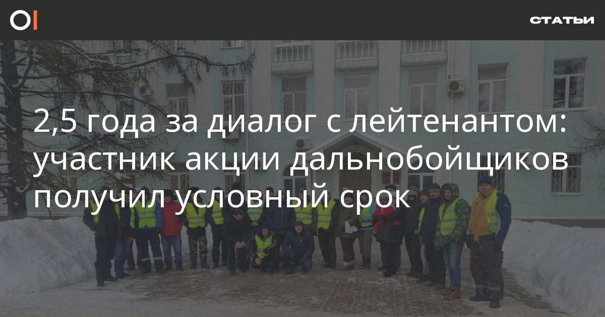 Участника осенней акции протеста дальнобойщиков Михаила Ведрова Пролетарский районный суд Твери приговорил к двум с половиной годам условно по обвинению в насилии в отношении полицейского (часть 1 318 УК). Прокуратура требовала посадить его на три года. Интересы Ведрова представлял адвокат от ОВД-Инфо Сергей Тельнов.