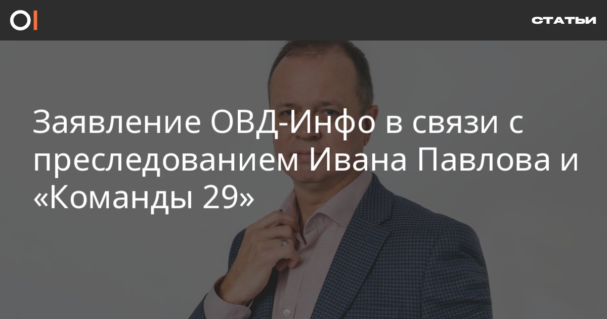 ОВД-Инфо выражает солидарность с Иваном Павловым и требуют от правоохранительных органов прекратить его преследование. Мы также выражаем поддержку всем тем, кого преследуют за реализацию своих прав, и в частности тем, кого защищают коллеги из «Команды 29».