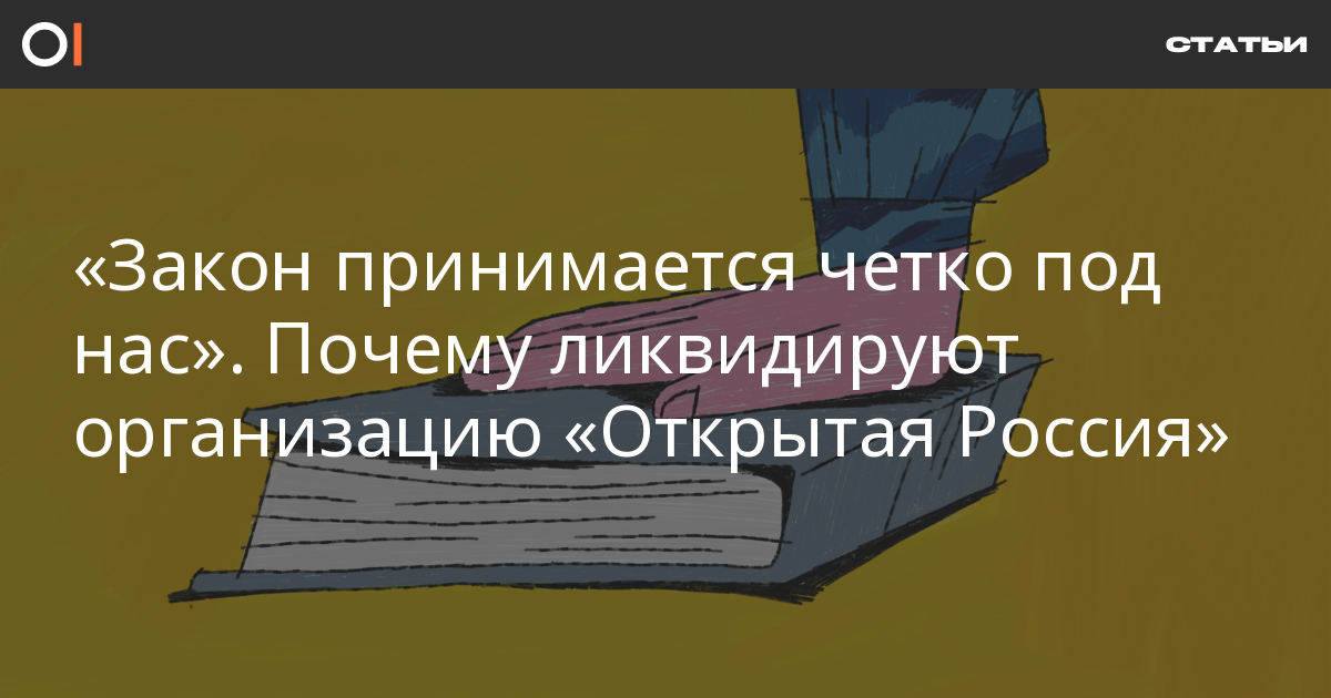 «Это неприятно, это болезненно. Обидно закрывать структуру, которой ты отдал столько времени, — рассказывает ОВД-Инфо бывший исполнительный директор „Открытой России“ Андрей Пивоваров. — Обсуждение наших шагов по защите активистов началось в мае, когда мы увидели новый законопроект. Мы рассматривали возможность законно отбиваться от силовых структур, но вся юридическая практика говорит о том, что это невозможно. Никто не рассматривает ваши аргументы, и суд просто штампует решения, которые присылаются из Центра „Э“».