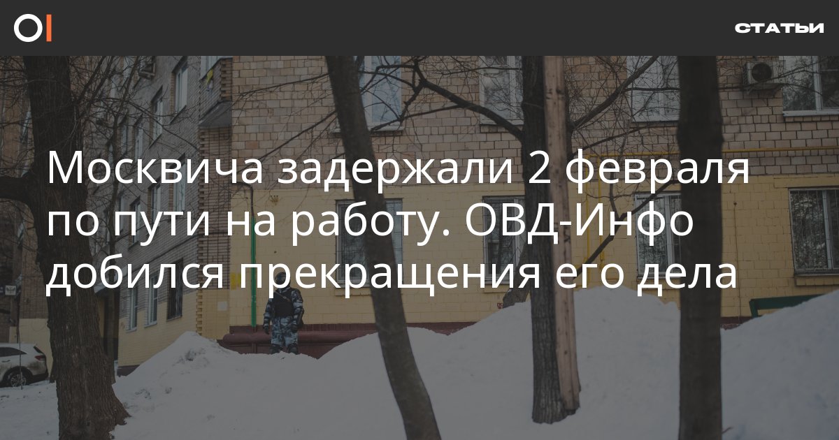 О том, что 2 февраля состоялся суд над Алексеем Навальным, он узнал от других задержанных. Они же посоветовали ему обратиться за помощью в ОВД-Инфо.