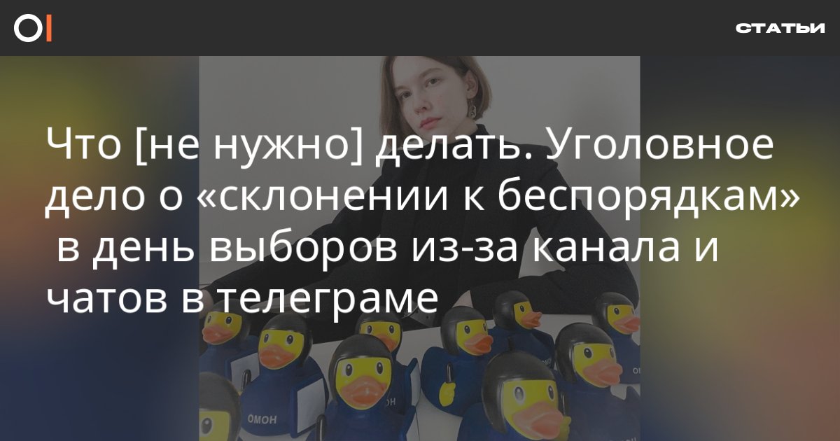 Не менее 10 человек в разных городах России привлечены к уголовной ответственности по делу о склонении и вовлечении в беспорядки накануне выборов. Силовики считают их причастными к телеграм-каналу «Что-делать!». У фигурантов дела прошли обыски, большинство из них суд заключил под стражу. Не все задержанные признают, что имели отношение к этому телеграм-каналу. ОВД-Инфо рассказывает, что известно об их уголовном деле.