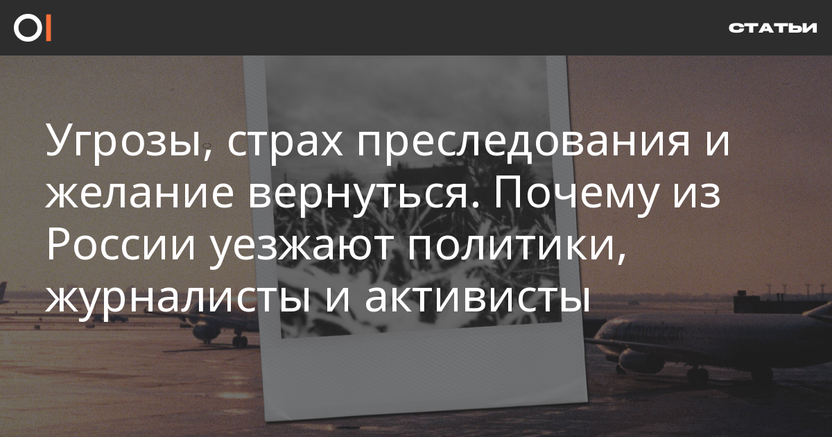 За 2021 год из России, по разным данным, уехали более тысячи активистов и журналистов из-за уголовного и политического преследования. Те, кто был вынужден покинуть страну, рассказали ОВД-Инфо, с чем было связано это решение и надеются ли они вернуться.