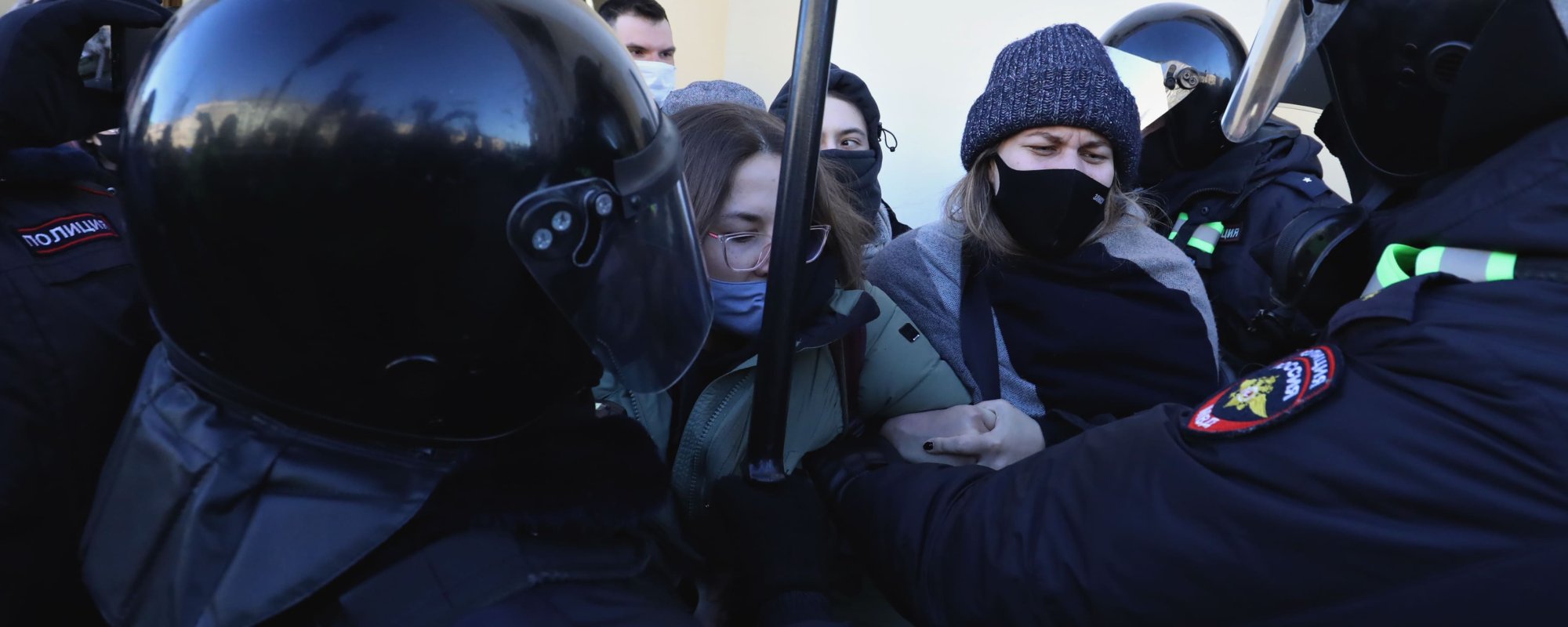 - В Петербурге на акции 27 февраля сотрудник ОМОНа ударил во время задержания по голове одну из протестующих. После этого ей стало плохо.