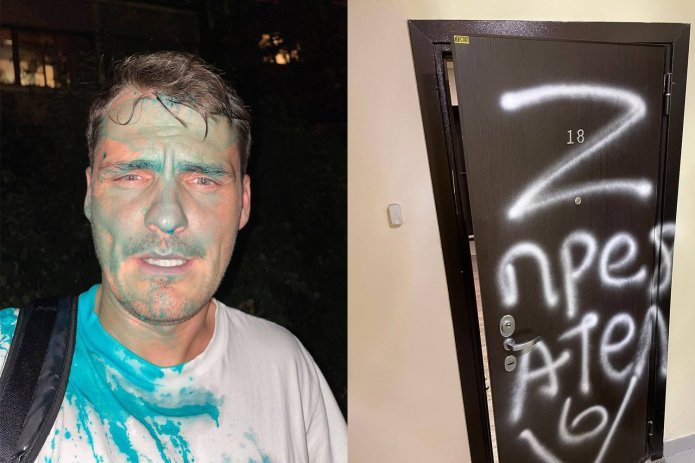 18 августа в Москве неизвестные облили зеленкой местного жителя Михаила Баранова. До этого, в марте, мужчину задержали на антивоенной акции на Манежной площади. С неизвестных аккаунтов в Instagram Михаил получал оскорбления и угрозы, а в июле на двери его квартиры кто-то написал «предатель».
