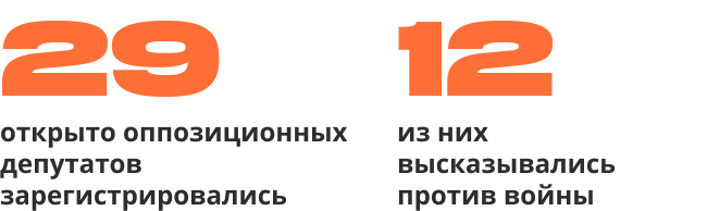 В список открыто оппозиционных депутатов мы включили тех, кто публично высказывался против войны в Украине, поддерживал Алексея Навального и его проекты, в том числе выходил на акции в его поддержку, или участвовал в протестах 2019 года. Только 12 человек с открытой антивоенной позицией смогли зарегистрироваться на текущих выборах.