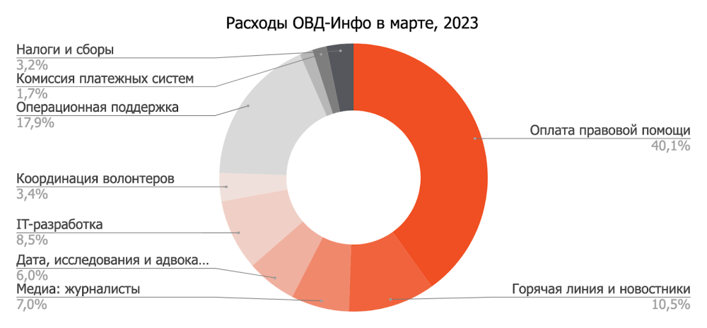 В марте на работу ОВД-Инфо поступило 19 612 перевода на сумму 26 556 413 руб.