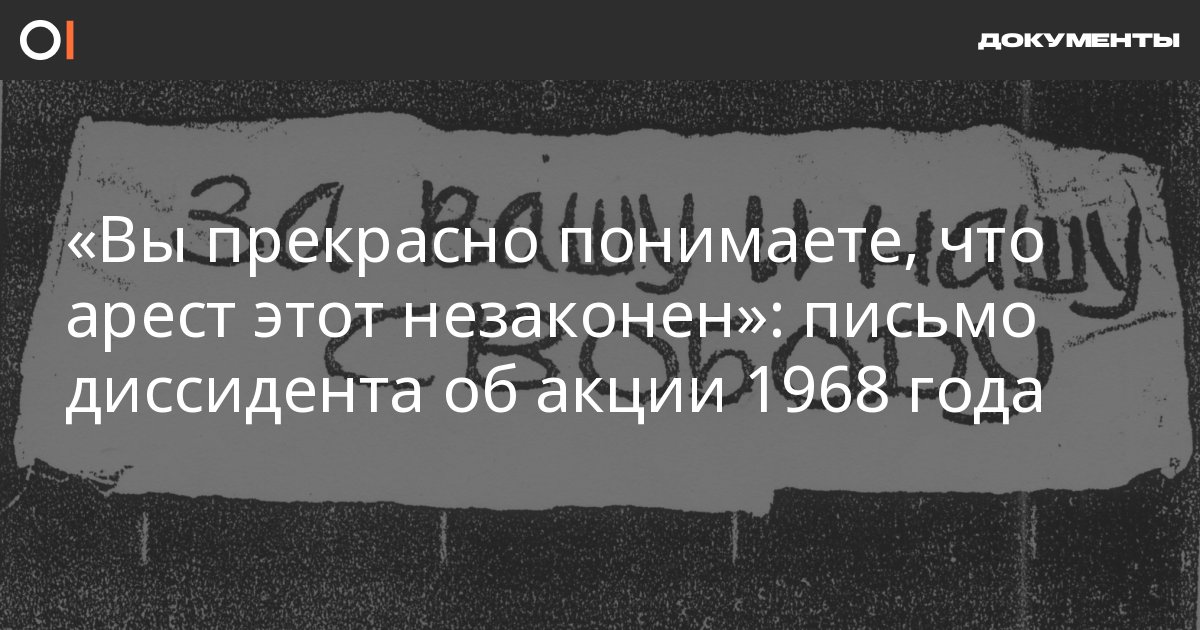 25 августа в Москве задержали участников встречи, посвященной пятидесятилетию «демонстрации семерых» — акции на Красной площади 1968 года против ввода советских войск в Чехословакию. ОВД-Инфо публикует письмо советского диссидента Петра Григоренко, изъятое при обыске 21 ноября 1968 года. Документы вернули в 1997 году и передали в архив Международного Мемориала. Письмо публикуется впервые. Орфография и пунктуация оригинала сохранены.