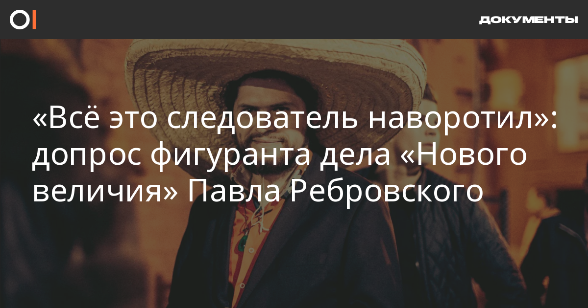 Фигурант дела «Нового величия» Павел Ребровский заявил, что дал признательные показания под давлением следователя — чтобы ему не вменили «террористическую» статью и не избили. Ранее он заключил досудебное соглашение и получил 2,5 года лишения свободы. ОВД-Инфо публикует фрагменты расшифровки с заседания 8 июля, где допрашивали Ребровского.