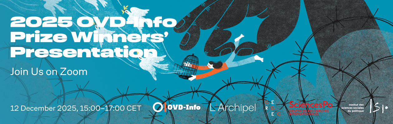 The OVD-Info Prize is an annual international award for the best Master’s and PhD research on political repression, surveillance and censorship in contemporary Russia. Launched in 2024 by the Russian human rights project OVD-Info together with EHESS-CNRS, Sciences Po-CERI and Paris Nanterre University, it supports young scholars in production of master theses and PhD dissertations on these subjects.