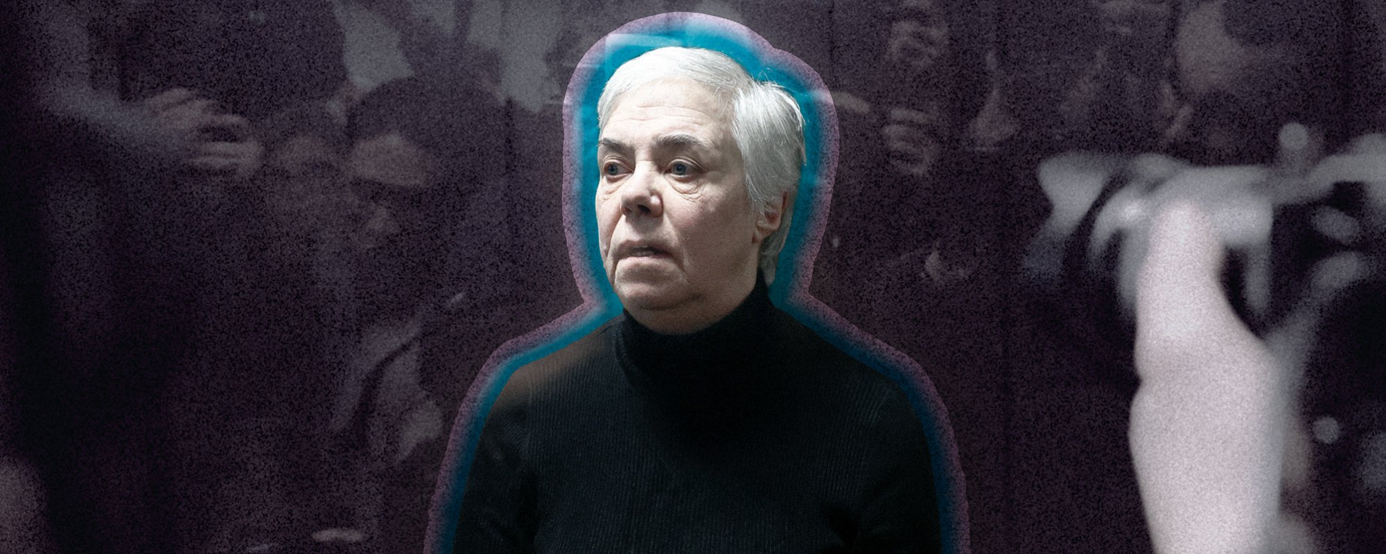 Nadezhda Buyanova at the Tushinsky District Court in Moscow, 12 November 2024. A 68-year-old doctor was sentenced to 5 years and 6 months of imprisonment in a case of anti-war sentiment during a hospital appointment / Photo and Illustration: OVD-Info