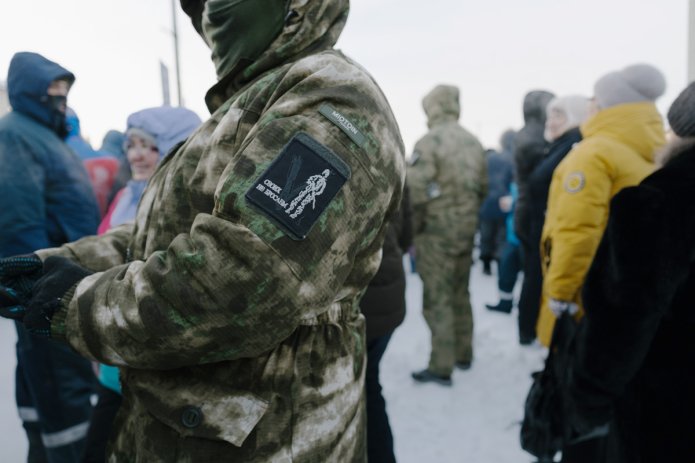 According to her, her husband was drafted in September 2022 and they have not seen each other since. The family is raising three children. The husband had a stroke after which he still stutters, but he was taken anyway. She continues to shout frantically: «Bastards, one day god will punish you! Go to Ukraine so it’ll be fair: war like war. Or give me back my husband, please! I will fight for him to the end. I’ll go to Putin, to Khabirov, I don’t care. Why are you here?!» — she wails and wipes away large tears.