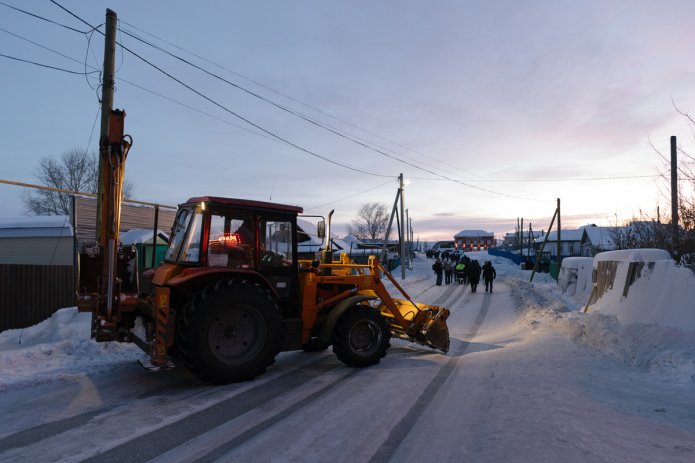 Baimak is a small town in southern Bashkortostan, surrounded by the Ural Mountains. Most of its inhabitants are native Bashkirs. The way of life is simple: people breed horses and cows and often work as beekeepers. There are no high-risers in Baimak. A winding road leads to the courthouse. Despite the harsh frost, men and women of all ages gather at the courthouse. Police block the roads there, and a tractor was used to cut through the crowd. The people are forced to park their cars and continue on foot.