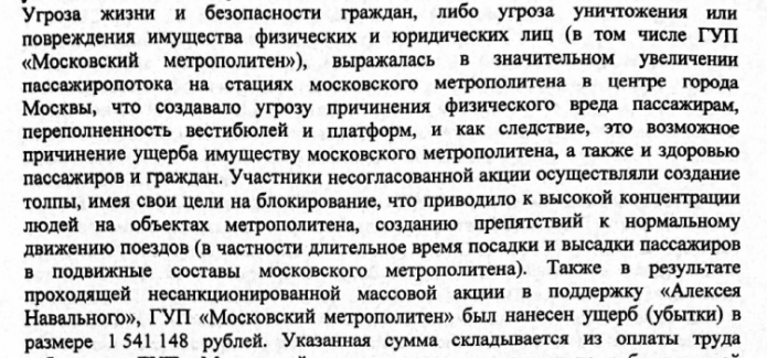 - After the spontaneous protests underlying the 2019 Moscow City Duma elections, some businesses demanded compensation from the alleged organizers. Thus, the court sustained the claims against the opposition and awarded damages of 1.2 million rubles and 657 thousand rubles consequently regarding the protests on July 27 and August 3 in favor of Mosgortrans — the organization pointed out that the protests led to blocking of the capital roads, public transport delays and loss of flights. Three lawsuits of 787 thousand rubles were also filed by the company «M.Taxi Communications», it complained about the losses caused by the delay in taxi traffic and an abnormal decrease in the number of orders due to the actions on July 27, August 3, and August 10. The court left these claims without consideration due to the absence of the plaintiff’s representative.