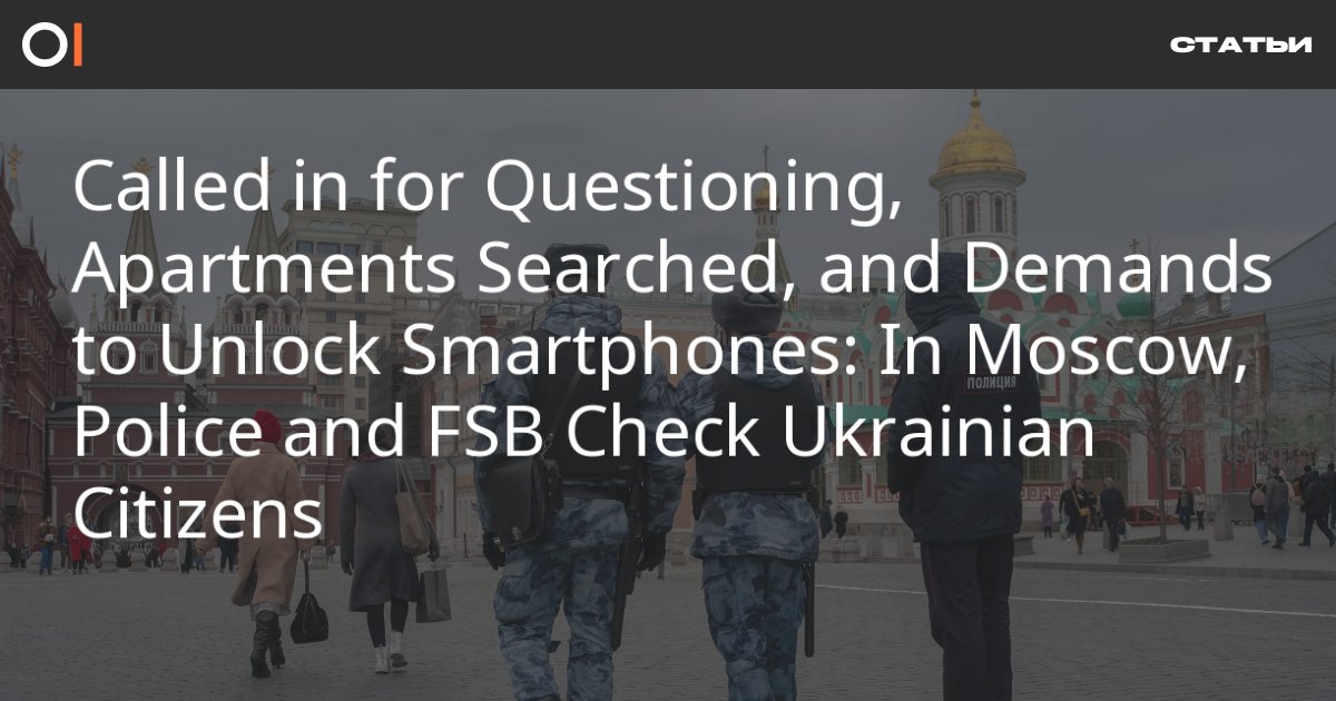The MVD and FSB received orders to carefully scrutinize all Ukrainian citizens living in Moscow. OVD-Info has spoken to two independent Ukrainian sources who confirmed this. Еhe law enforcement agents themselves didn’t seem to know what they were supposed to be doing with the Ukrainians. Some were offered Russian citizenship through a fast-track procedure, others had criminal charges for petty hooliganism fabricated against them.