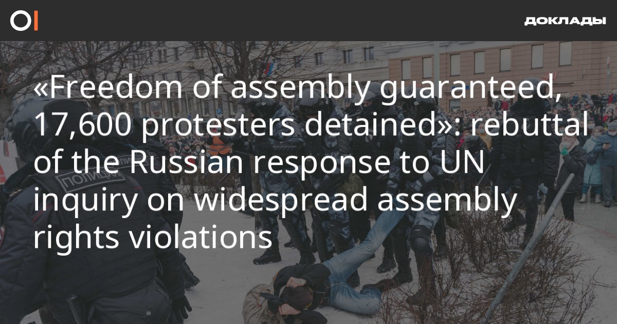 «Freedom of assembly guaranteed, 17,600 protesters detained»: rebuttal of the Russian response to UN inquiry on widespread assembly rights violations