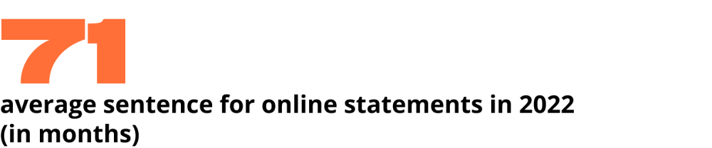 In some cases included in our statistics of prosecutions for online posts, there are additional charges besides the ones for expressing opinions. For instance, Kirill Butylin is also accused of arson, while Bogdan Ziza is accused of vandalism by pouring paint over an administration building. This has affected the average sentence for online statements, which, without these two cases, stands at 67 months in 2023.