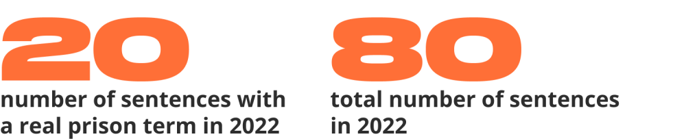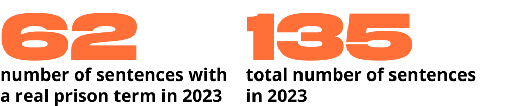 The difference in the average sentence and the number of sentences with real prison terms between 2022 and 2023 is equally clear. However, it is important to note that we are comparing uneven periods - 9.5 months in 2022 and 7 months in 2023.