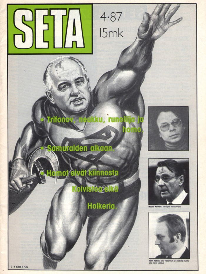 Other sources claim that Reijo’s work visa was cancelled two years later, and the ban followed the SETA magazine’s special edition in 1987. The cover showed General Secretary Mikhail Gorbatchev as Superman in the homoerotic style of the artist Tom of Finland.