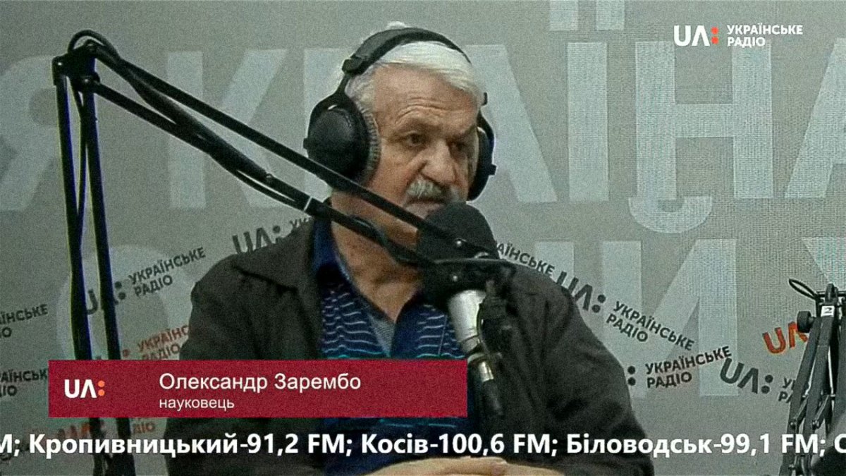 Oleksandr Zaremba on air on the «Ukrainian Radio, ” August 2020 / Screenshot: YouTube Channel „Українське радіо“