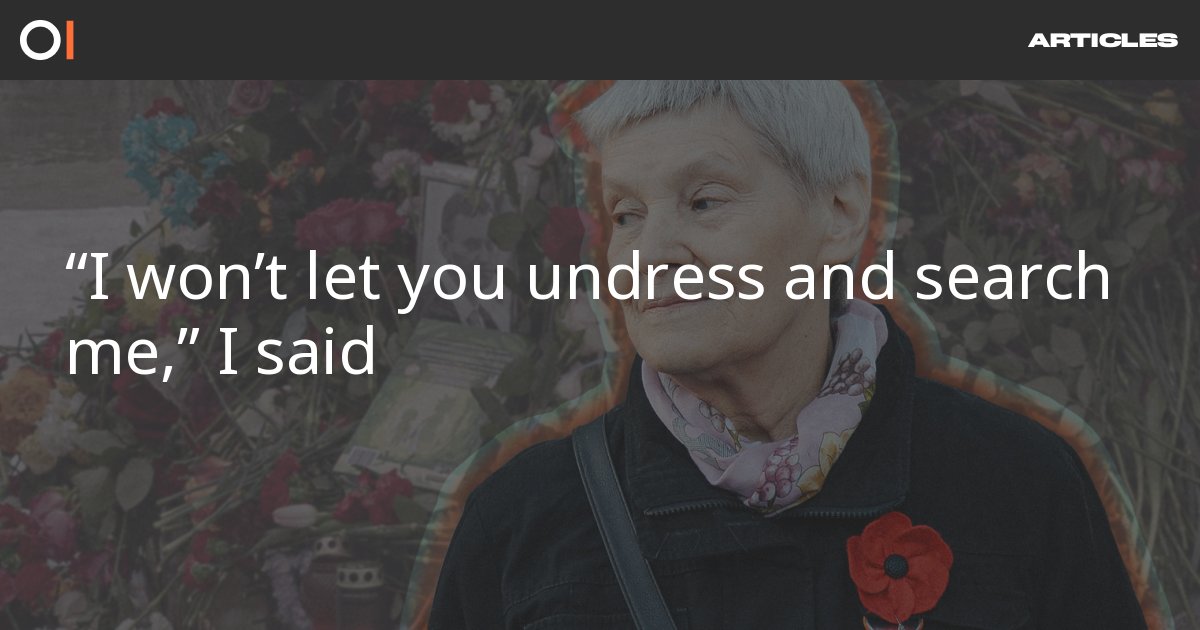 But the woman I was with stripped down to her T-shirt. She had laced home pants, and the lace could not be removed — so they cut it off. They left her in the pants, which were almost falling down. Can you imagine what a humiliation it is? I said: «Girls, how can you not be ashamed? I’m a teacher, I’ve had lessons with so many children, I’ve never seen such a thing!» I’ve worked as an elementary school teacher for 40 years, I have a teaching excellence award, it’s my favorite job, my students still come to me. «No, take off your clothes and that’s it». I said I won’t do it. You can kill me. «Then we’ll put you in a cell and you’ll sit there until the trial». Do it. And I’m not gonna let you roll my fingerprints.