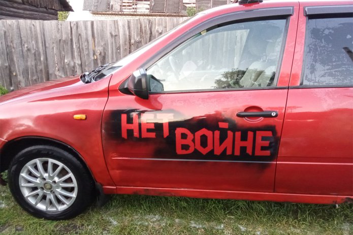 When Russia’s full-scale invasion of Ukraine began, I wanted to express my position — with a can of black paint, I wrote «No to War'' on the door of my red car. On 6 March 2022, there was an all-Russian anti-war action in which I decided to take part. In addition to the inscription on the door, I attached an image of Putin with crossbones to the rear window and added „Putin is a murderer“.