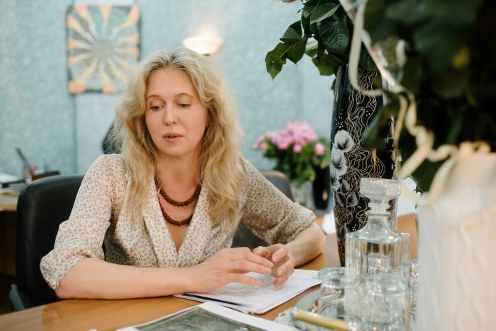 We arranged an interview with Natalia in one of the buildings of her company. A courteous employee of the company meets us at the door, opens the massive wooden doors and leads us into the boss’s office. Natalya asks to wait a bit — she is talking on the phone, sitting in a massive leather chair. A large table in front of her is lined with flowers — Garyaeva had a birthday the day before.