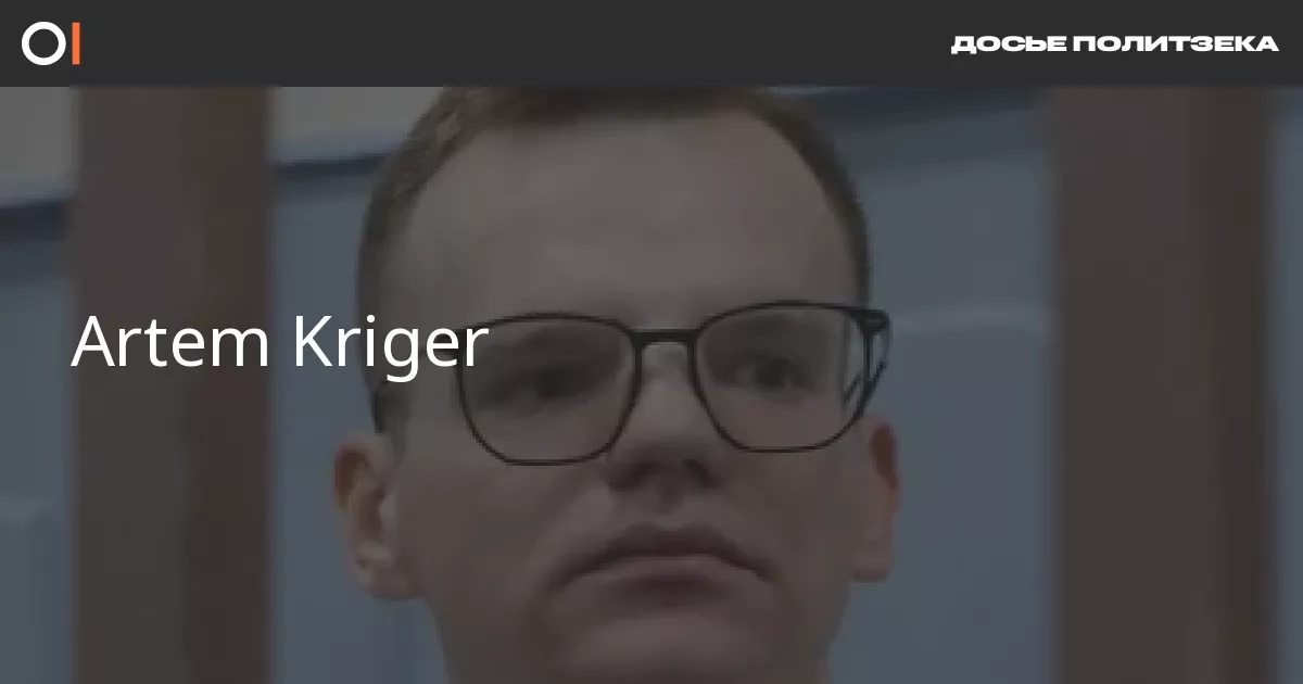 Journalist of the SOTAvision paper. On June 18th 2024, his home was searched as part of a case of participation in the activities of an extremist community due to alleged connections to the Anti-Corruption Foundation. On the same day he was taken into custody. On April 15th 2025, Kriger was sentenced to five and a half years in a general regime colony.