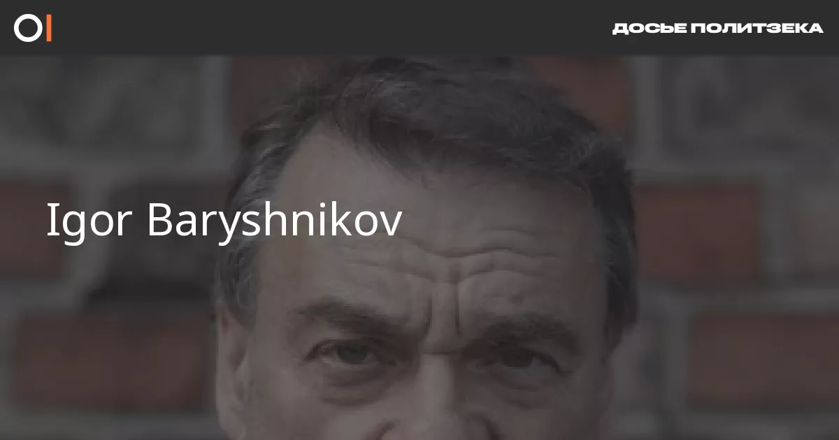 A resident of Sovetsk (Kaliningrad Oblast). In Soviet times worked as an engineer, after 1991 he owned retail grocery shops in Magnitogorsk. In Sovetsk he lived with his paralysed 96-year-old mother and looked after her alone. A search was conducted in Baryshnikov's house on 4 May 2022. On June 22nd it became known that another case was brought against him, also under the article on the dissemination of deliberately false information about the Armed Forces of the Russian Federation. Later there was information that the cases were combined. Baryshnikov is suspected of having cancer. On 22 June 2023 Baryshnikov was sentenced to