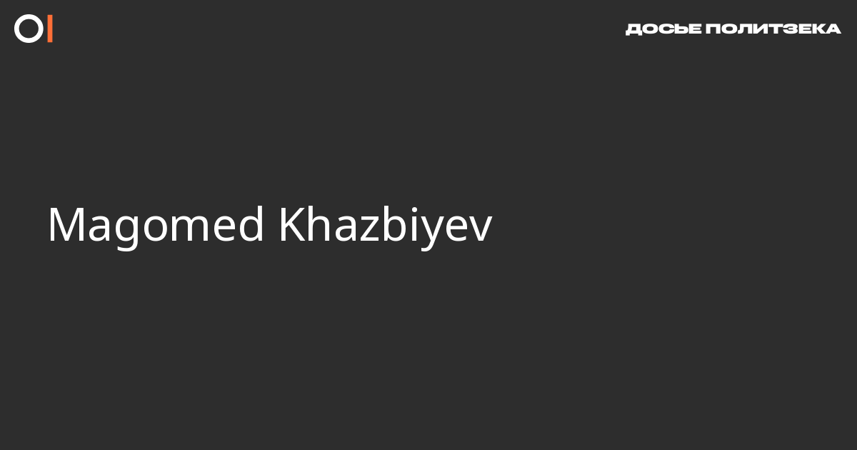 Magomed Khazbiyev is an Ingush opposition activist. In January 2015, he was put on an international wanted list due to suspicion of car theft and weapons possession. Arrested on 11 January 2018 on charges of illegal possession of weapons and insulting a government official. On 24 May 2018, Khazbiyev was charged with a incitement of hatred or humiliation of dignity on the grounds of belonging to the social group of a government official. On 27 November, he was sentenced to two years and 11 months in a open prison. On 26 February 2019, the term was reduced by three months due to the cancellation of the sentence in terms of incitement to hatred. On 25 July 2019, Khazbiyev was released.