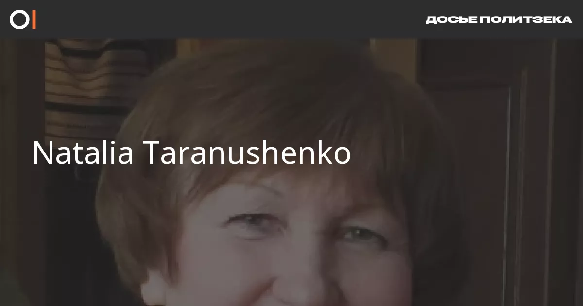 A teacher of Russian language and literature at secondary educational school No. 1 in Protvino (Moscow Region). In June 2024, it became known that a case was opened against her for spreading deliberately false information about the Russian Armed Forces: according to the investigation, she showed her pupils a video with footage of the invasion of Ukraine. Later it was reported that she left Russia. On 13 July 2024, Taranushenko was detained in Armenia at the airport before departure. She was released under an obligation to appear. On 23 June 2025, Taranushenko was sentenced in absentia to seven years in