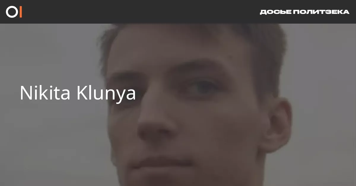 A student at Sortavala College and a member of the Russian Civil Alliance movement. He was charged with a terrorist attack on the railway. His lawyer stated that Klunya was charged based on receiving a personal message with instructions for making an explosive substance and the testimony of two witnesses. Those close to him claim that he was not involved in the arson. Later, it became known that Klunya was also accused of high treason, confidential cooperation with a foreign state, and public calls to terrorism or its justification. Regarding the actual terrorist attack charge, he was initially accused of organising it, but the charge was later reclassified to preparation for the organisation. His defence lawyer was charged with non-disclosure. On 31 May 2024, Klunya was sentenced to 14 years in a strict regime colony. On 30 August 2024, the court of appeal increased the sentence from 14 years to 19 and a half years. At the same time, the court considered the organisation of the terrorist attack as a completed act and removed the application of the article on preparation for a crime.