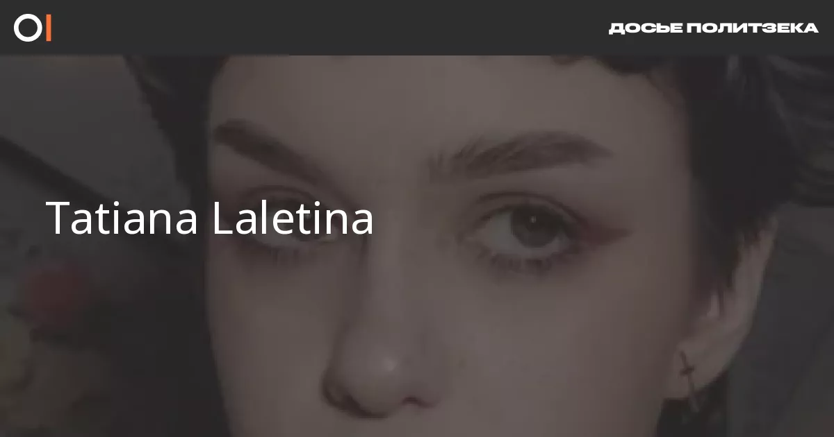 Artist, born in Kamchatka, lived in Tomsk. On 26 February 2024, she was detained. The reason was 10 dollars, which, according to her own words, she transferred to a certain Ukrainian fund. On 28 February, Laletina was arrested for 14 days under the administrative article on disorderly conduct (Article 20.1 of the Administrative Code). Apparently, no later than the end of the administrative arrest, she was taken into custody on charges of high treason. After the law enforcers uncovered Laletina's correspondence with a friend living in Dnipro, another transfer made in April 2022 became part of the case. On 17 April, the FSB issued a press release about the detention of two people for "providing financial assistance to a foreign state in activities against the security of the Russian Federation": it was about Laletina and a certain young man. On 28 June 2024, the artist was sentenced to nine years in a general regime colony.