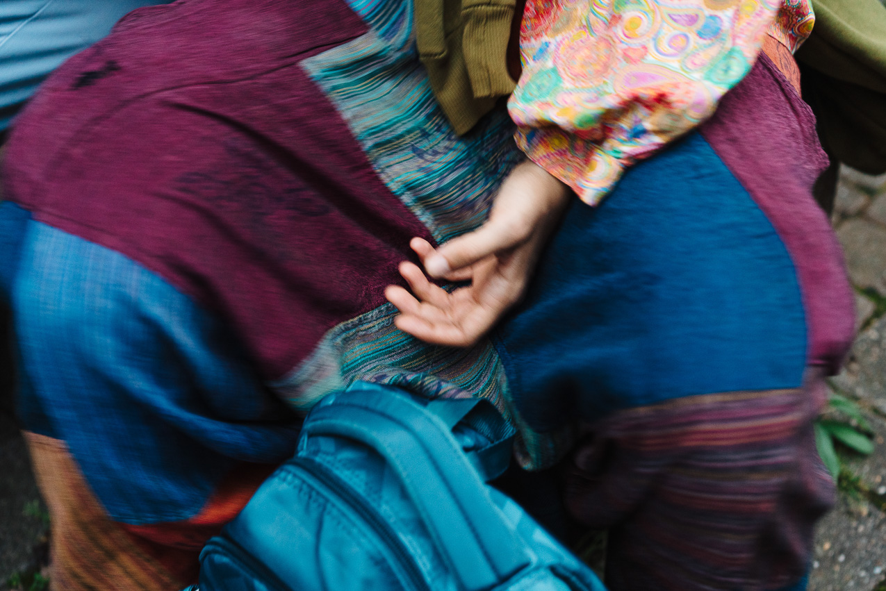 We walk along the noisy streets of Cologne. Sasha is wearing colourful bell-bottoms, sewn together as if from different patches of thick fabric. An olive-coloured sweatshirt girds her waist, and the sleeves of a loose, colourful shirt tremble from the broken movements of her arms. Friends and relatives sent her bright clothes to the pre-trial detention centre to support her. They also tried to ensure that Sasha could be given medications and food for a lifelong diet due to her gluten intolerance, as the state rations were not sufficient to follow it.