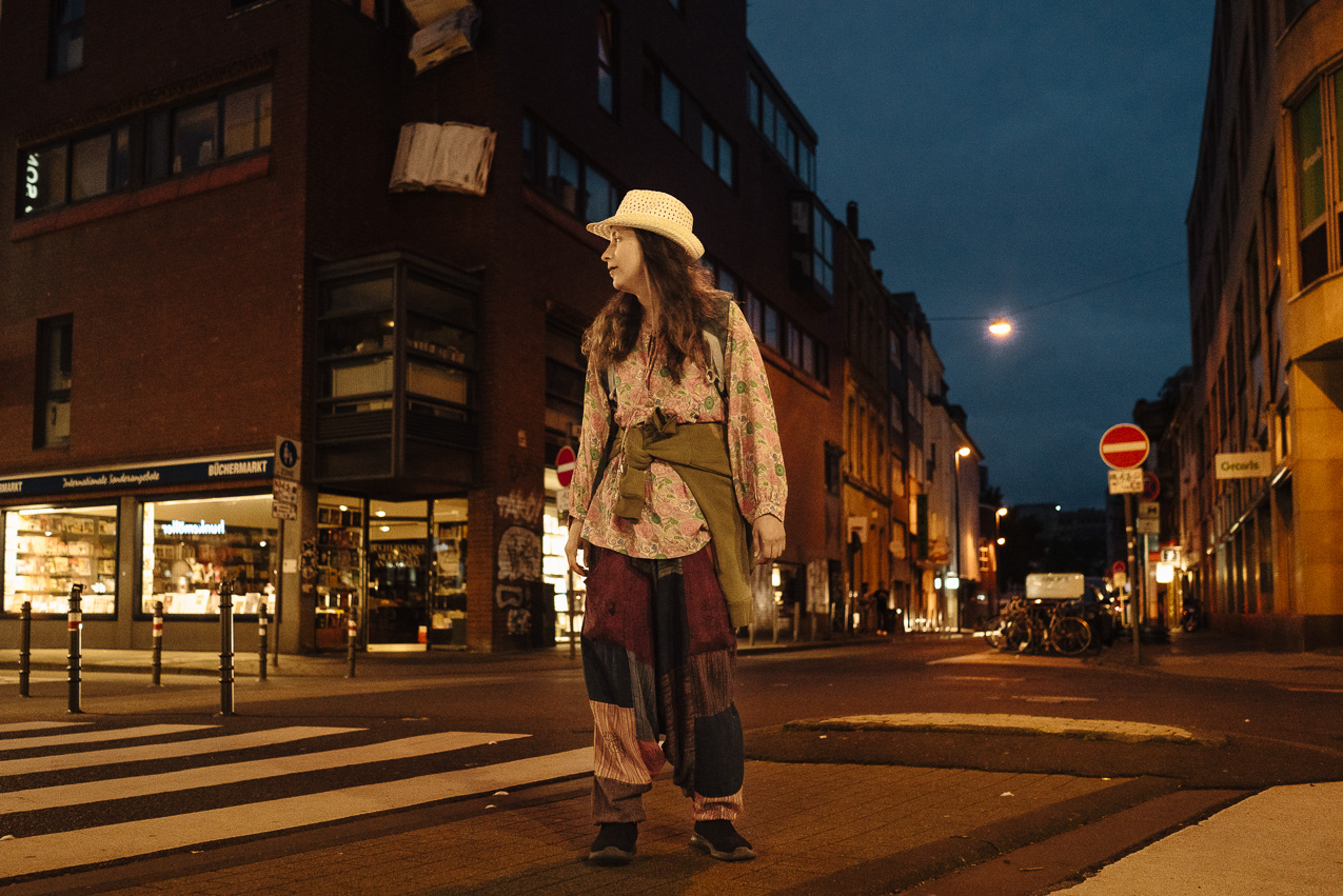 We are walking through the very centre of Cologne. Quiet, narrow alleys are replaced by noisy avenues, and when we pass by places with a lot of people and blaring music, Sasha wrinkles her nose slightly, as if the volume had just been blasted to the max. We go on and on, and she can’t stop going, but she admits that her legs aren’t used to this and get tired quickly.