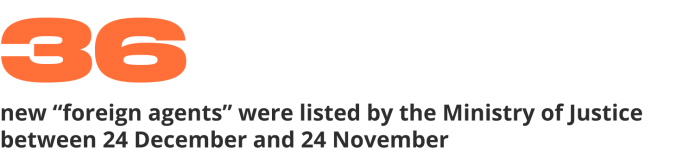 From 24 December to 24 January the Russian authorities recognised two organizations as “undesirable” - the “Russian Anti-War Committee in Sweden” and the “Andrei Sakharov Fund.” 24 organizations have been added to the list since February 24.