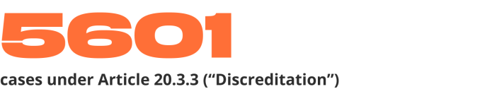 A case under 20.3.3 of the criminal code continues to be applied against almost any public action connected to Ukraine. So, in Tula oblast an administrative case under an article for discrediting the Russian army was instigated against a DJ in a cafe for playing a song by the Ukrainian group Potap and Nastya, which he played during the New Year’s TV address from Vladimir Putin.