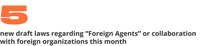 Laws stipulating that any cooperation with foreign NGOs is only possible after entering information about their structural units on the Russian territory into a special register and initiating control over their activities are currently under consideration. If there is no such information in the register, administrative or criminal liability will be imposed for cooperation with an NGO or organizing its activities.
