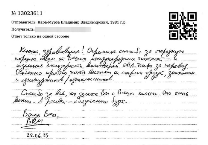 Hello Ksyusha (OVD-Info representative)! Huge thanks for another batch of letters from your international readers — and huge thanks to OVD-Info volunteers for the translations. I’m especially happy to read letters from old friends, acquaintances and classmates/coursemates.