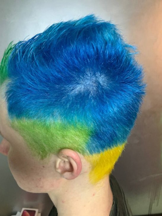 I have dyed my hair blue-yellow since 2020 and have done so until now. I can see for myself how things are changing in society. At the beginning of 2022 there was a lot of respect, and people asked permission to take pictures of me from behind. The summer of 2022 was quiet as well. The following year there were a few skirmishes because of this. Once children threw stones at me and sang the Russian national anthem.
