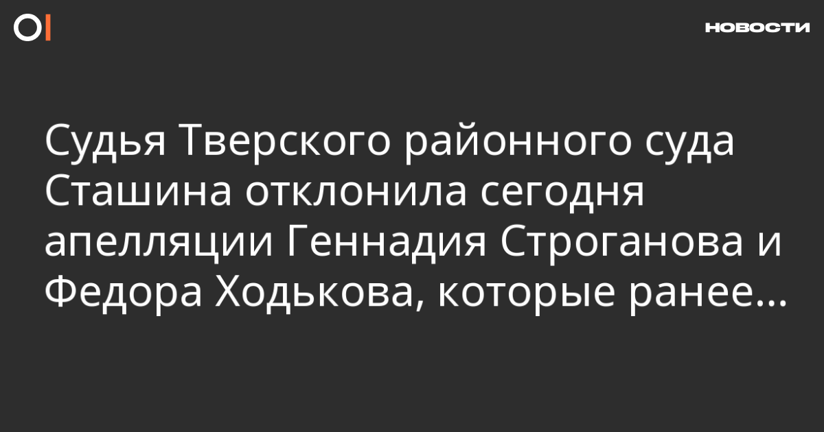 Судья Тверского районного суда Сташина отклонила сегодня апелляции Геннадия Строганова и Федора Ходькова, которые ранее были приговорены к 6 суткам административного ареста за участие в акции у Государственной думы 21 декабря.