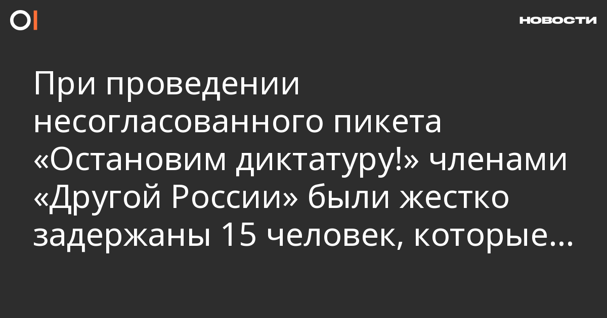 При проведении несогласованного пикета «Остановим диктатуру!» членами «Другой России» были жестко задержаны 15 человек, которые даже не успели развернуть баннер.