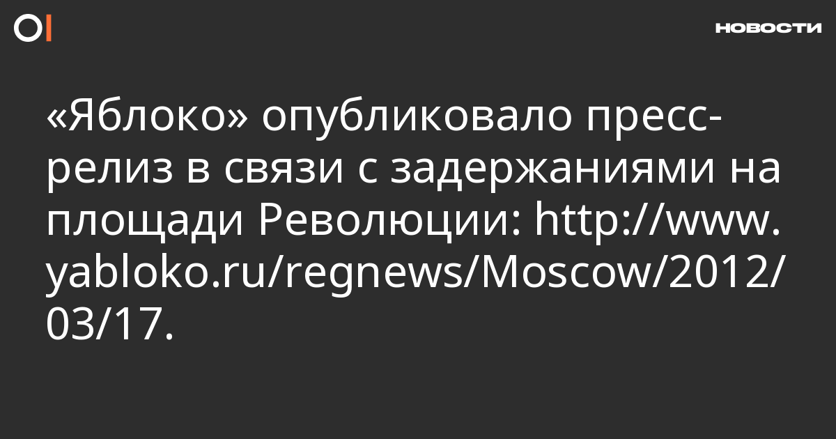 «Яблоко» опубликовало пресс-релиз в связи с задержаниями на площади Революции: http://www.yabloko.ru/regnews/Moscow/2012/03/17.
