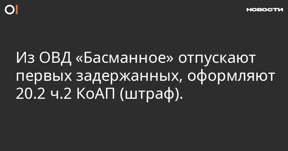 Из ОВД «Басманное» отпускают первых задержанных, оформляют 20.2 ч.2 КоАП (штраф).