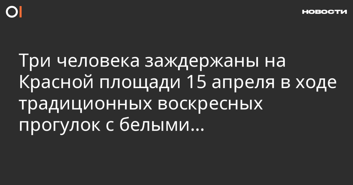Три человека заждержаны на Красной площади 15 апреля в ходе традиционных воскресных прогулок с белыми лентами. Надежда Митюшкина, Денис Юдин и Борис Бейлинсон были задержаны на Красной площади, после того, как они развернули плакат с надписью «Астрахань». В данный момент их доставили к ОВД «Китай-Город».