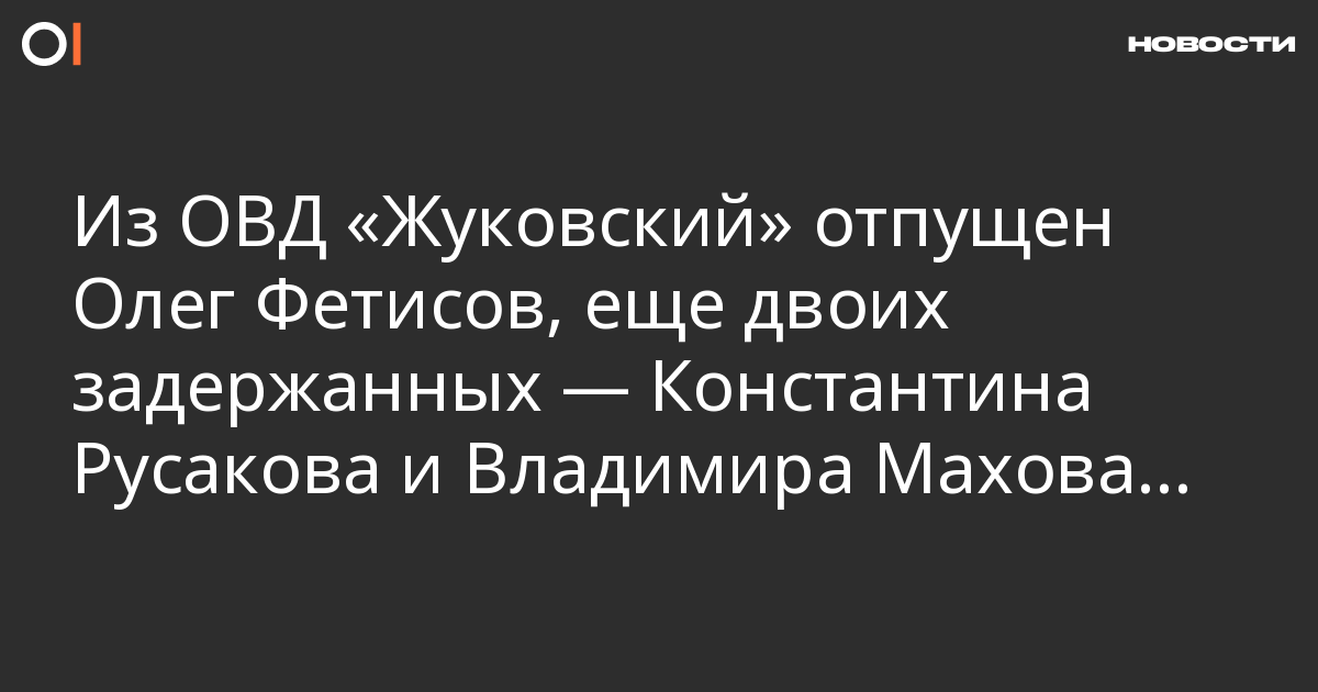 Из ОВД «Жуковский» отпущен Олег Фетисов, еще двоих задержанных — Константина Русакова и Владимира Махова — сотрудники полиции отправили в больницу без объяснения цели поездки.