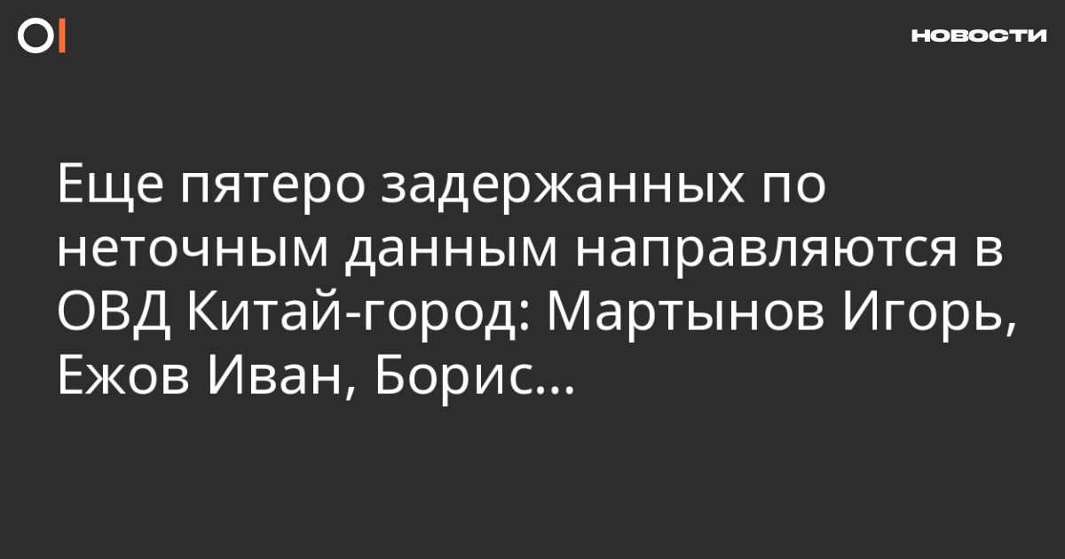 Еще пятеро задержанных по неточным данным направляются в ОВД Китай-город: Мартынов Игорь, Ежов Иван, Борис Кротов и еще 2 человека.