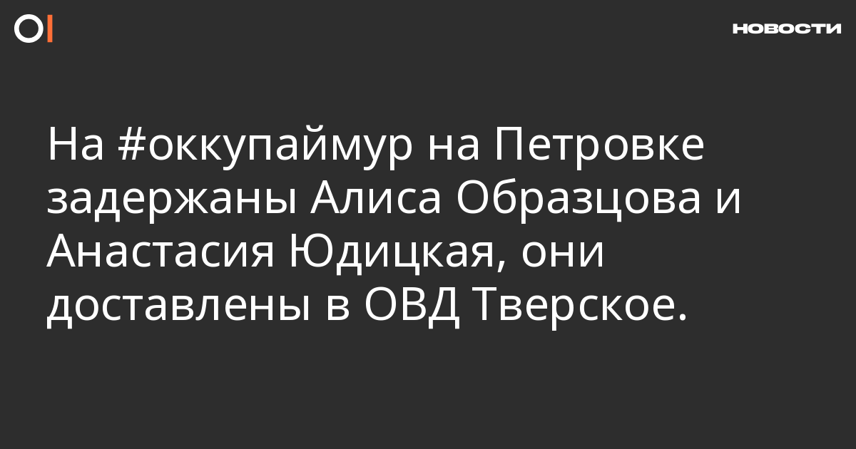 На #оккупаймур на Петровке задержаны Алиса Образцова и Анастасия Юдицкая, они доставлены в ОВД Тверское.