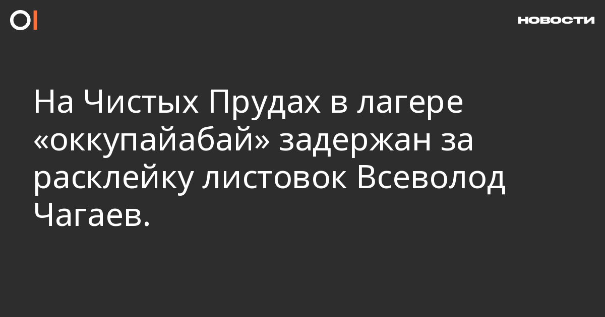 На Чистых Прудах в лагере «оккупайабай» задержан за расклейку листовок Всеволод Чагаев.